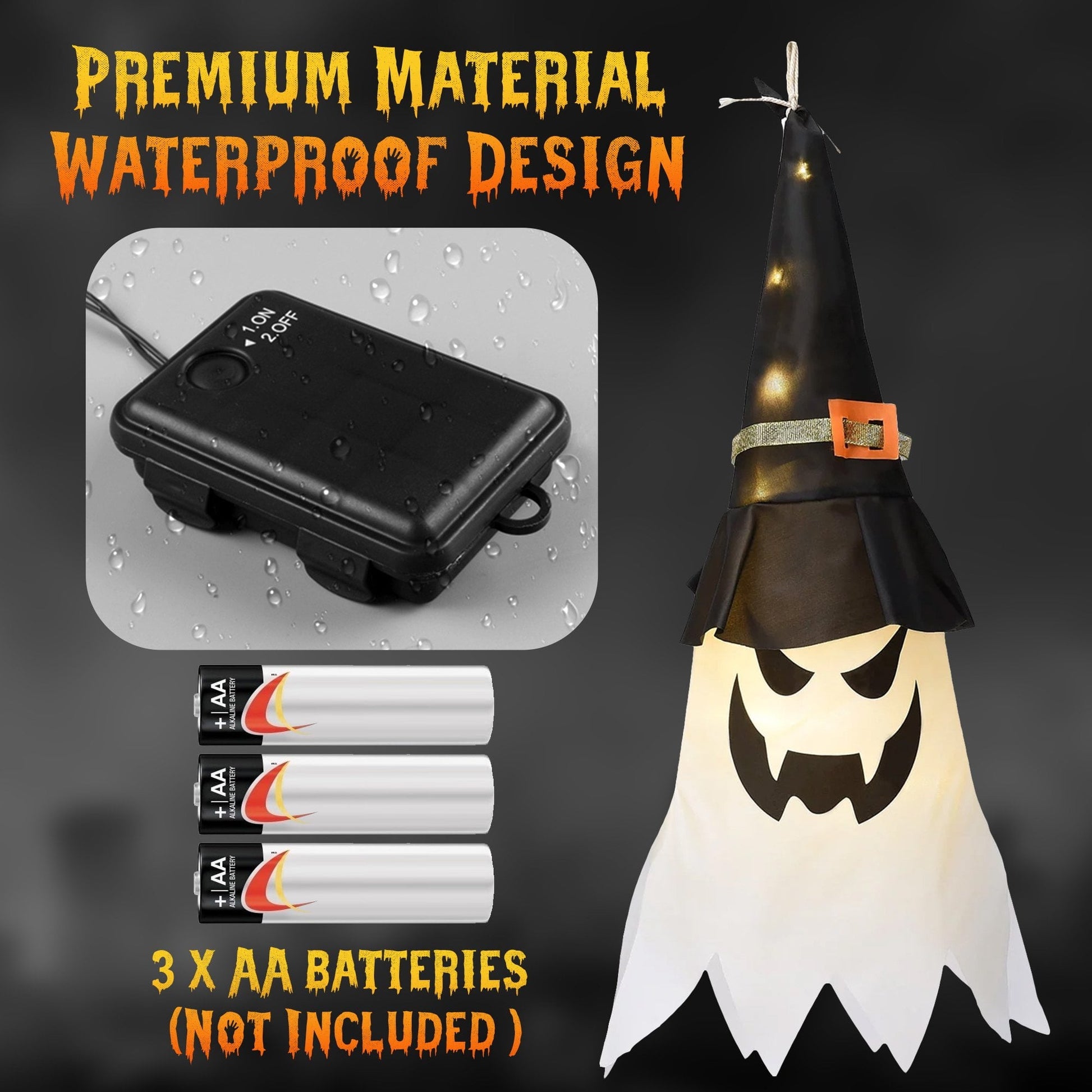 Halloween Decorations Outdoor - 5 PCS Hanging Halloween Lighted Glowing Ghost Witch Hat With LED String Lights