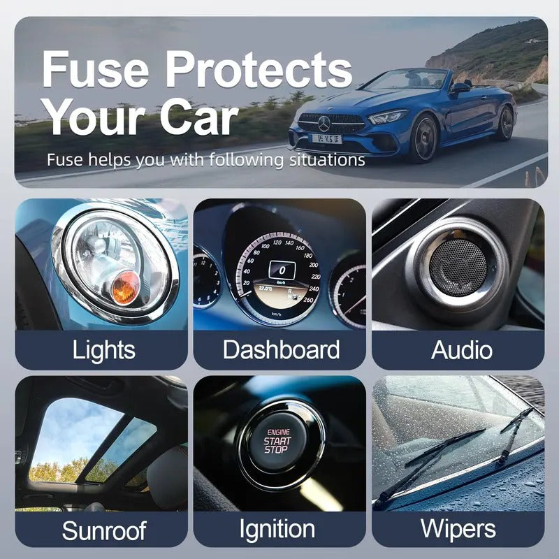 📦Also comes with a puller for easy replacement. 🛠️Versatile Fuses·Includes fuses in various amperages: 2A, 3A, 5A, 7.5A, 10A, 15A, 20A, 25A, 30A, 35A, and 40A.